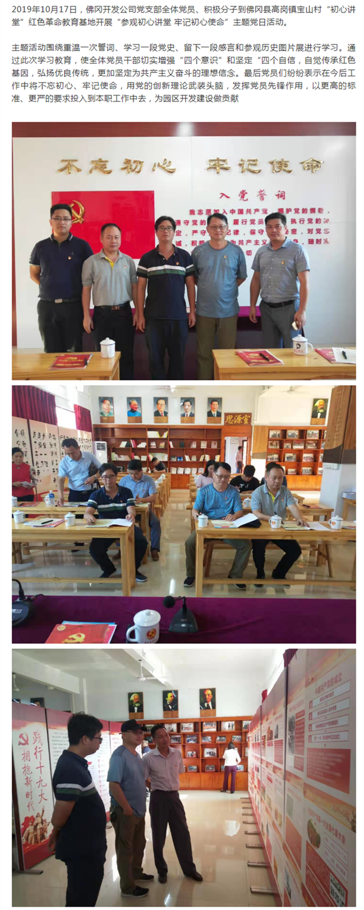 - 支部風(fēng)采 - 佛岡開發(fā)公司黨支部到寶山村“初心講堂”開展主題黨日活動 2019年10月17日,佛岡開發(fā)公司黨支部全體黨員、積極分子到佛岡縣高崗鎮(zhèn)寶山村“初心講堂